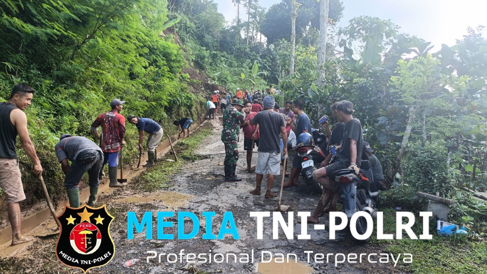 BPBD serta relawan dan warga sekitar yang telah membersihkan tumpukan tanah hingga jalan bisa dilewati kembali.