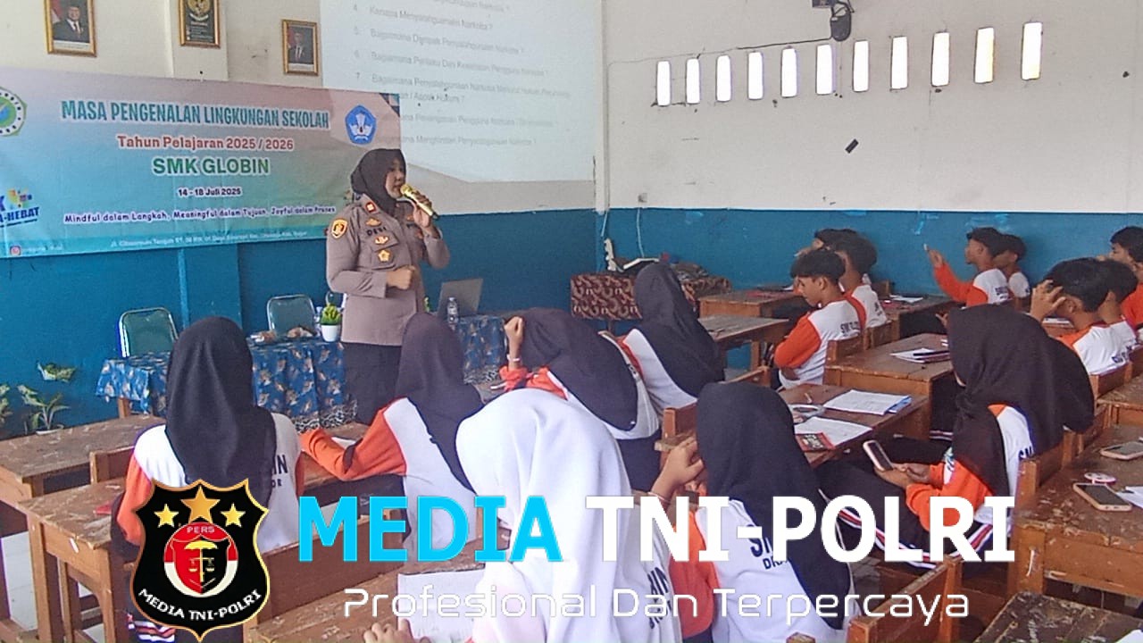 Bogor // mediatni-polri.com / Polres Bogor – Kapolsek Dramaga Polres Bogor, Iptu Desi Triana, S.H M.H memberikan Materi Dalam Giat MPLS SMK GLOBIN DRAMAGA Di Kp Cibeureum Tengah Rt.06/01 Desa Sinarsari Kecamatan Dramaga, Sampaikan Bahaya Penyalahgunaan Narkoba Serta Kenakalan Remaja/Pelajar Wajib Di Hindari, Kamis, tgl 17 Juli 2025, mulai pukul 13.00 wib sampai selesai.