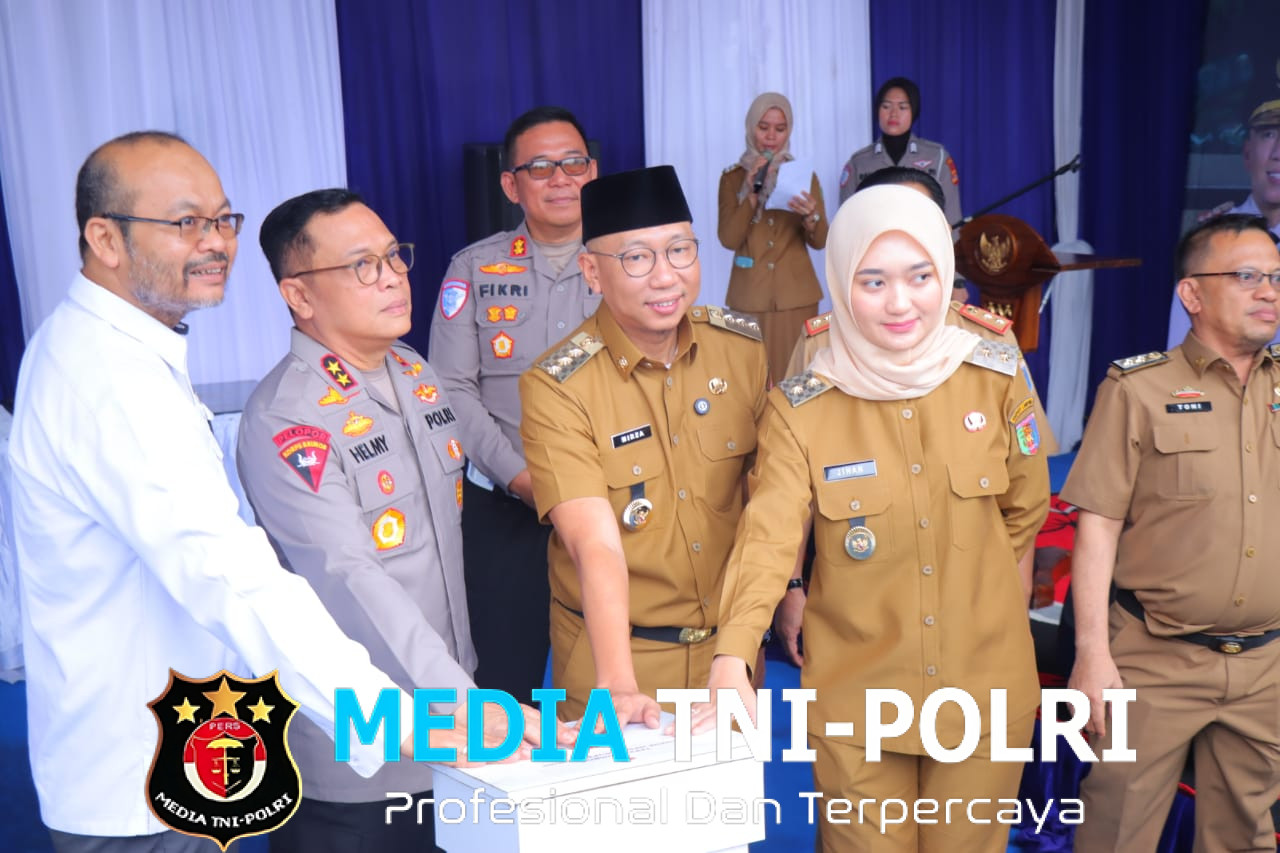 LAMPUNG // MEDIATNI-POLRI.COM / Gubernur Lampung Rahmat Mirzani Djausal didampingi Wakil Gubernur Jihan Nurlela dan Kapolda Lampung Irjen Pol Helmy Santika meluncurkan layanan Samsat Digital Drive Thru untuk perpanjangan STNK lima tahunan, di depan Lapangan Korpri, Kantor Gubernur Lampung, Senin (21/4/2025).