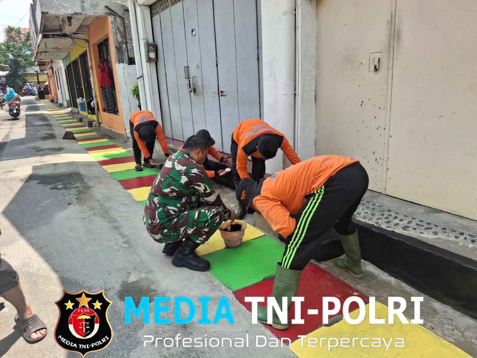 Danramil 03/Serengan Kodim 0735 Surakarta Kapten Cba Tri Rusman Prasetyo S. Sos mengungkapkan bahwa pengerjaan pengecetan lis jalan dan penutup saluran air ini diawali dengan membersihkan sekitar jalan untuk menghilangkan debu dan sisa bahan bangunan yang sudah menempel, sehingga hasilnya lebih bagus untuk dilakukan pengecatan.