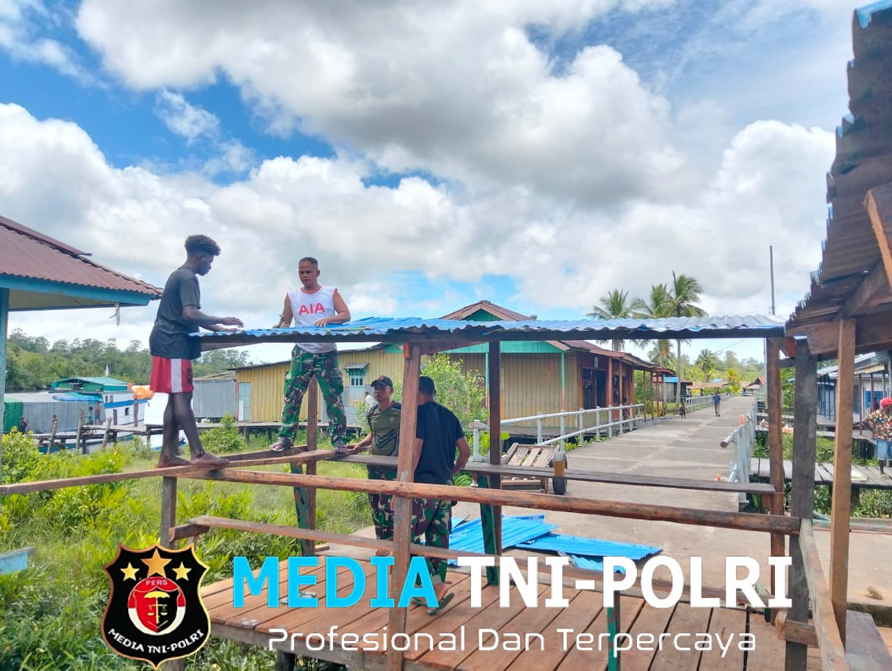 FAYIT // MEDIATNI-POLRI.COM / Dalam rangka memperingati Hari Juang Kartika, Satuan Tugas (Satgas) Yonif 123/Rajawali Pos Fayit melaksanakan kegiatan pembangunan pasar untuk masyarakat yang berjualan di Kampung Ayis, Distrik Fayit, Papua Selatan, Senin (15 Desember 2025).