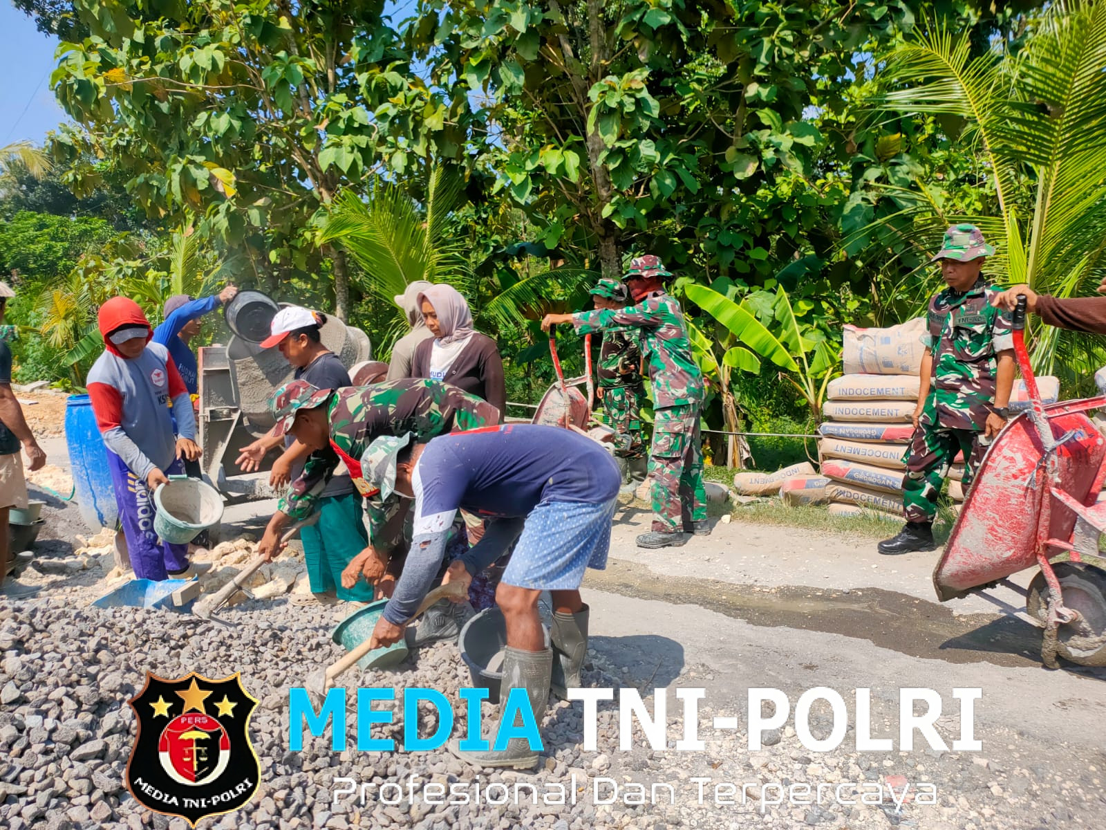 warga bersama satgas TMMD 113 rela berpanas-panasan bergotong royong dalam pengerjaan rabat beton jalan di desanya. Hal ini semata-mata agar jalan desa nya cepat selesai dan TMMD selesai tepat waktu.