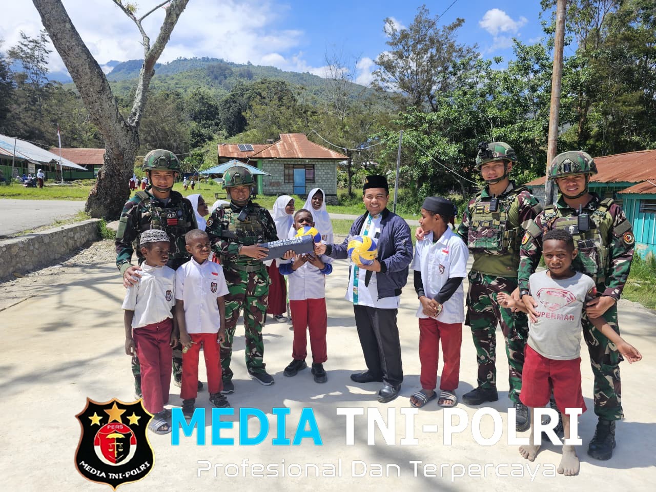 Menunjukkan kepedulian TNI terhadap kebugaran masyarakat lokal, Satgas Yonif 521/DY termasuk memberikan bantuan sarana olahraga karena minimnya fasilitas olahraga bagi masyarakat dan anggota Satgas di Distrik Walesi, Jayawijaya, Papua Pegunungan (28/10/2025)