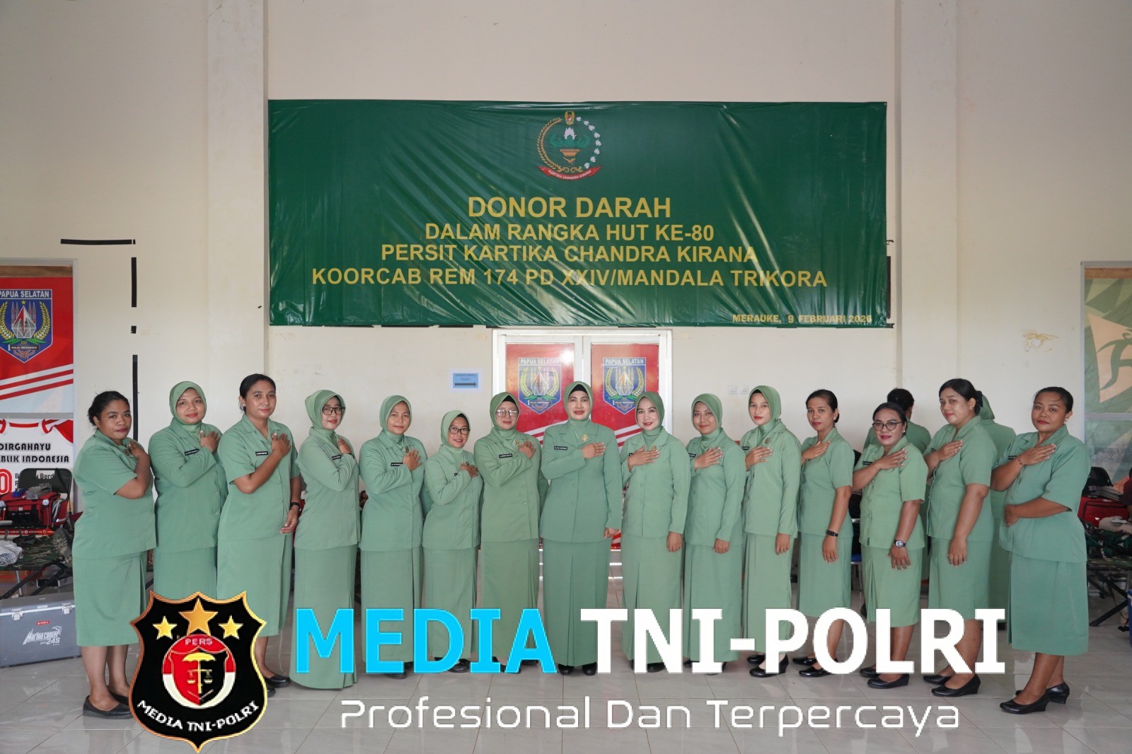 MERAUKE // MEDIATNI-POLRI.COM / Peringatan Hari Ulang Tahun (HUT) ke-80 Persit Kartika Chandra Kirana di wilayah Korem 174/ATW diwarnai dengan kegiatan kemanusiaan berupa donor darah yang digelar Persit KCK Koorcab Rem 174 PD XXIV/Mandala Trikora.