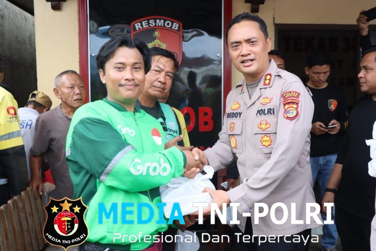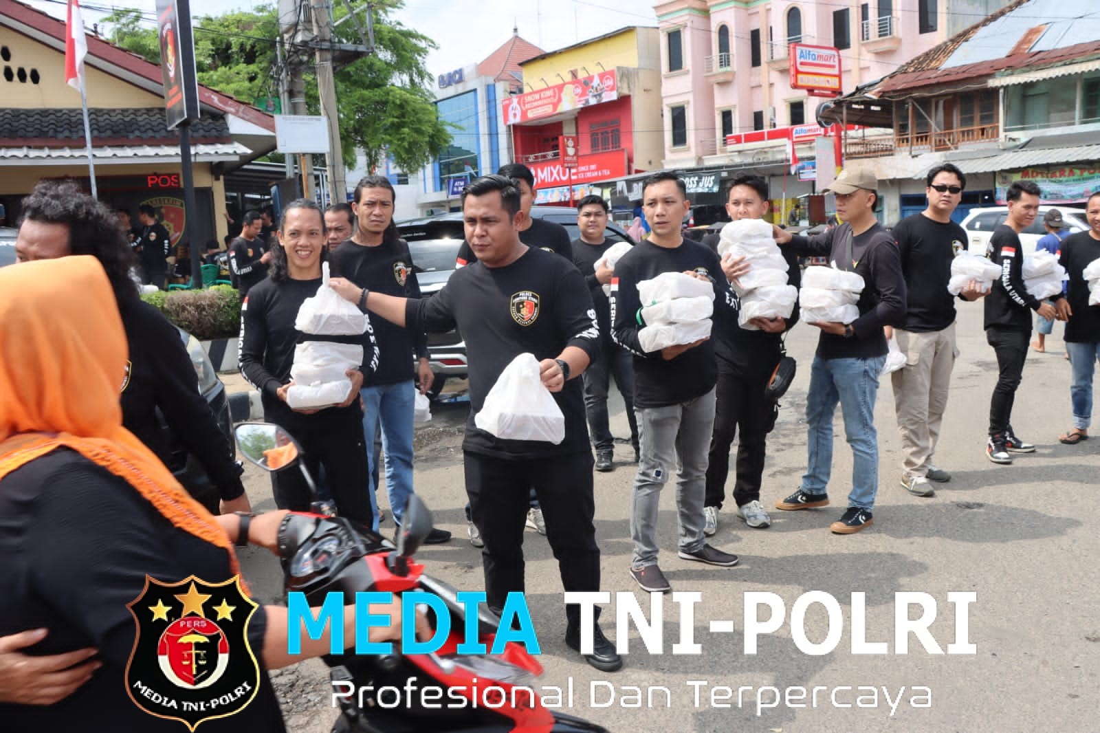 Disela-sela acara Kapolres AKBP Deddy mengatakan, hari ini kami membagikan sebanyak 308 nasi kotak untuk para ojek online dan masyarakat sekitar yang melintas.