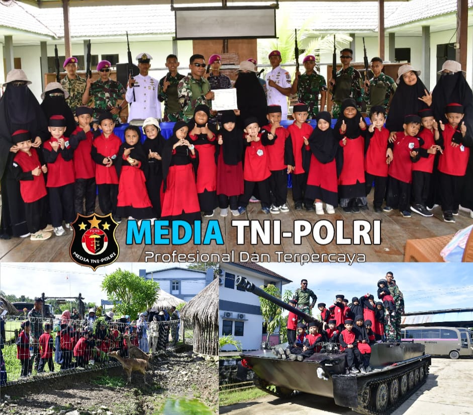KOTA SORONG PBD // MEDIATNI-POLRI.COM / Dalam rangka mengenalkan dan mengedukasi sejak usia dini, Prajurit Denmako Pasmar 3 menerima kunjungan TK Islam Gabungan Usaha Perbaikan Pendidikan Indonesia (GUPPI) 1 Kota Sorong, bertempat di Mako Pasmar 3, Kesatrian Agoes Soebekti, Jl. Sorong-Klamono, Km. 16, Distrik Klaurung, Kota Sorong, Papua Barat Daya. Kamis (10/10/2024).