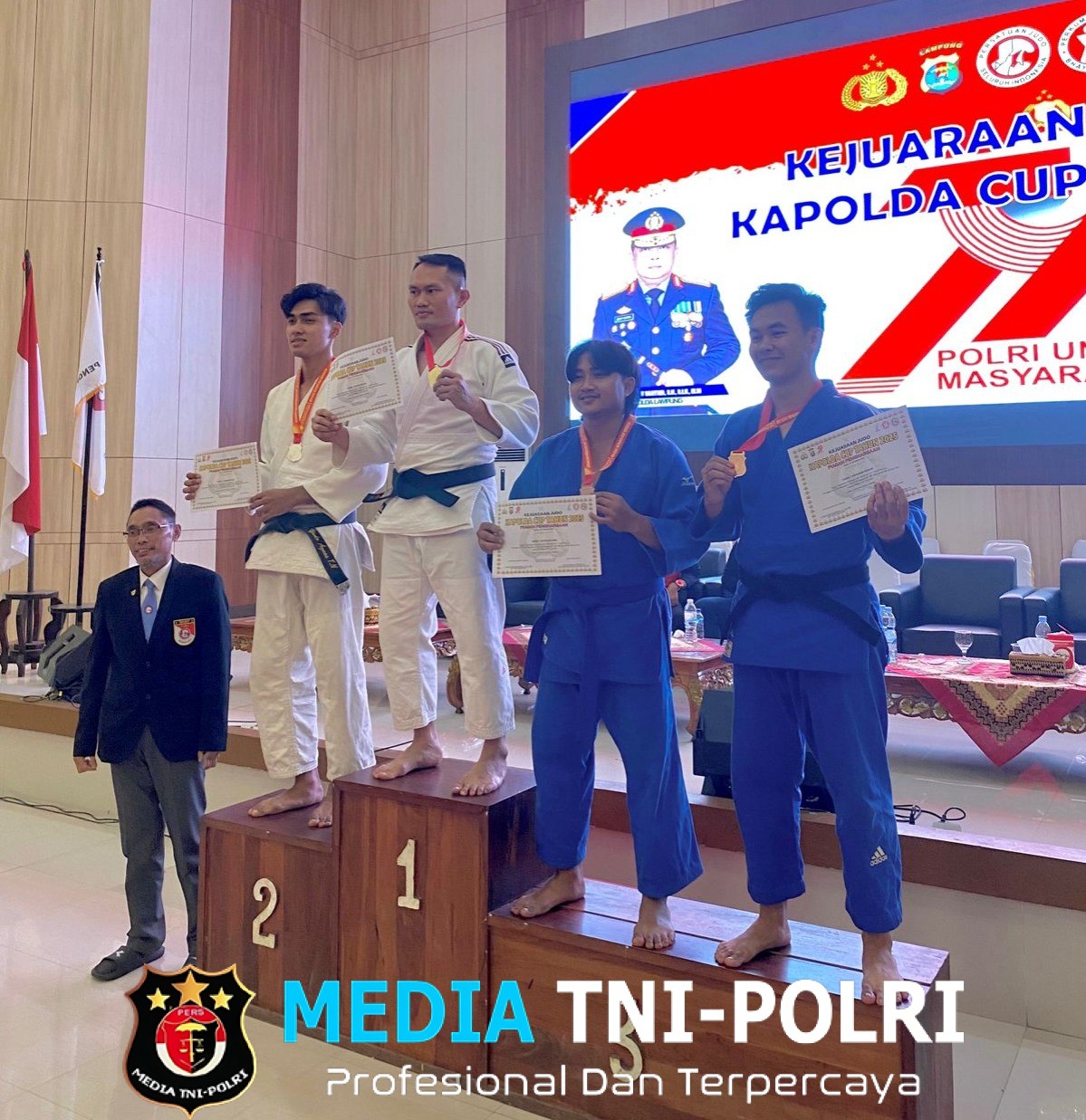 “Alhamdulillah, personel kami Iptu Bayu Z. Ogara kembali mengharumkan nama Polres Lampung Tengah dengan meraih emas di kategori senior kelas 81kg/putra, pada Kejuaraan Judo Kapolda CUP 2025, yang dibuka oleh Wakapolda Lampung, Brigjen Pol Dr. Ahmad Ramadhan, S.H., M.Si., M.H, di GSG Presisi Polda Lampung,” kata Kasi Humas saat dikonfirmasi.