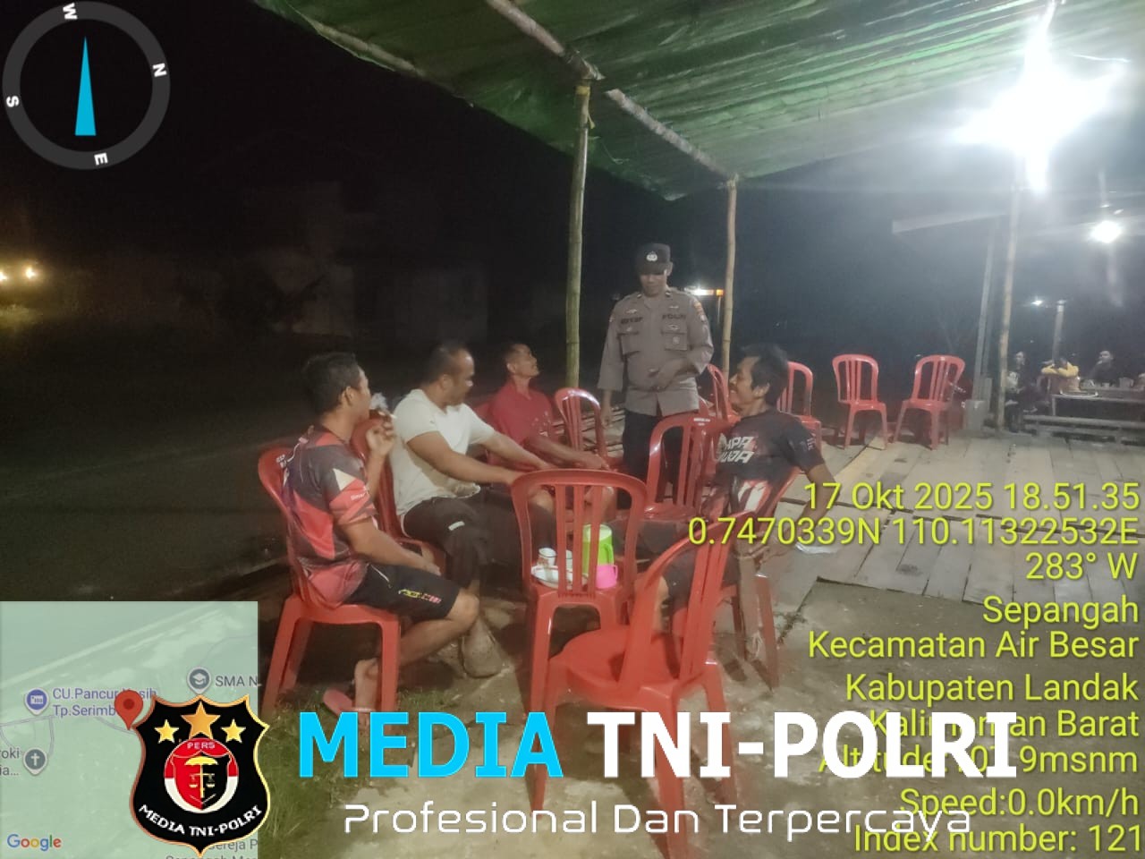 LANDAK // MEDIATNI-POLRI.COM / Polsek Air Besar ~ Polres Landak ~ Polda Kalbar ~ Dalam rangka menjaga situasi kamtibmas tetap aman dan kondusif, jajaran Polsek Air Besar melaksanakan patroli malam dialogis di wilayah hukumnya pada Jum’at malam (17/10/2025).