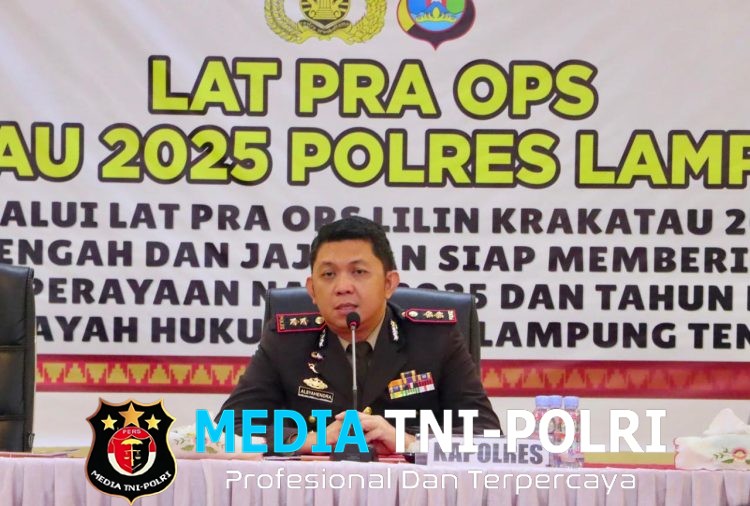 LAMPUNG TENGAH // MEDIATNI-POLRI.COM / Polres Lampung Tengah, Polda Lampung menggelar Latihan Pra Operasi (Lat Pra Ops) Lilin Krakatau 2025 sebagai bagian dari persiapan pengamanan perayaan Natal 2025 dan Tahun Baru 2026 (Nataru), Jumat (19/12/2025).