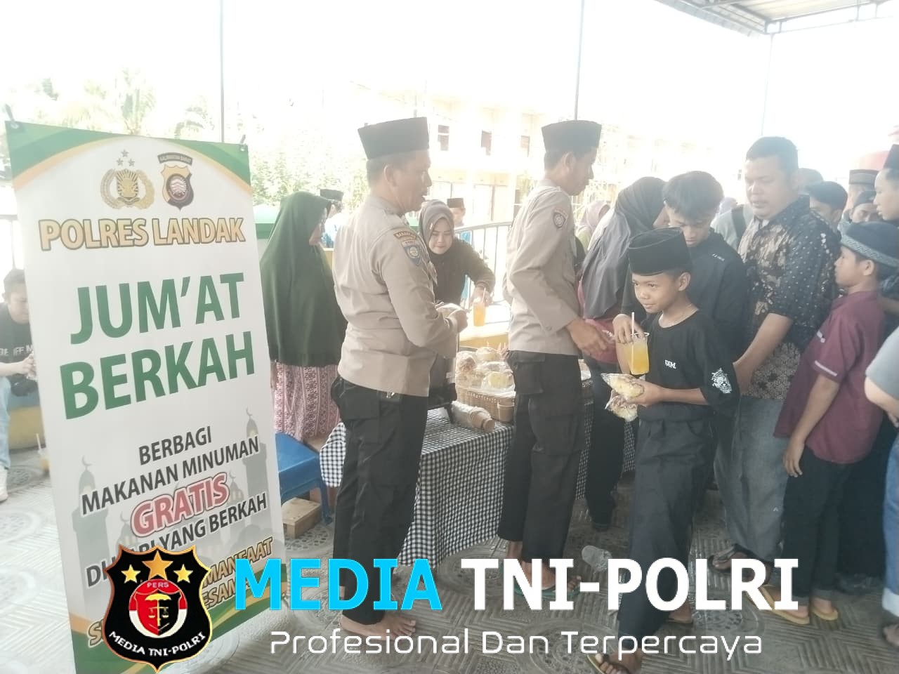 Di tempat ibadah yang ramai dikunjungi jamaah tersebut, Polres Landak melaksanakan kegiatan “Jumat Berkah” dalam rangka mendukung Harkamtibmas melalui aksi berbagi makanan dan minuman gratis.