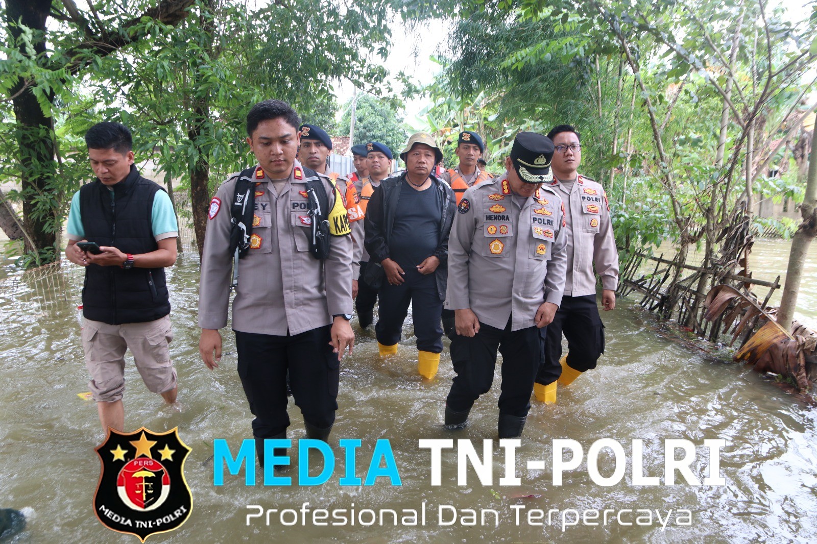 JAWA BARAT // MEDIATNI-POLRI.COM / Kepala Bidang Hubungan Masyarakat Polda Jawa Barat, KombesPol. Hendra Rochmawan, S.I.K., M.H., meninjau langsung situasi banjir yang melanda wilayah Desa Karangligar, Kecamatan Teluk Jambe Barat, Kabupaten Karawang, Rabu (21/01/2026).
