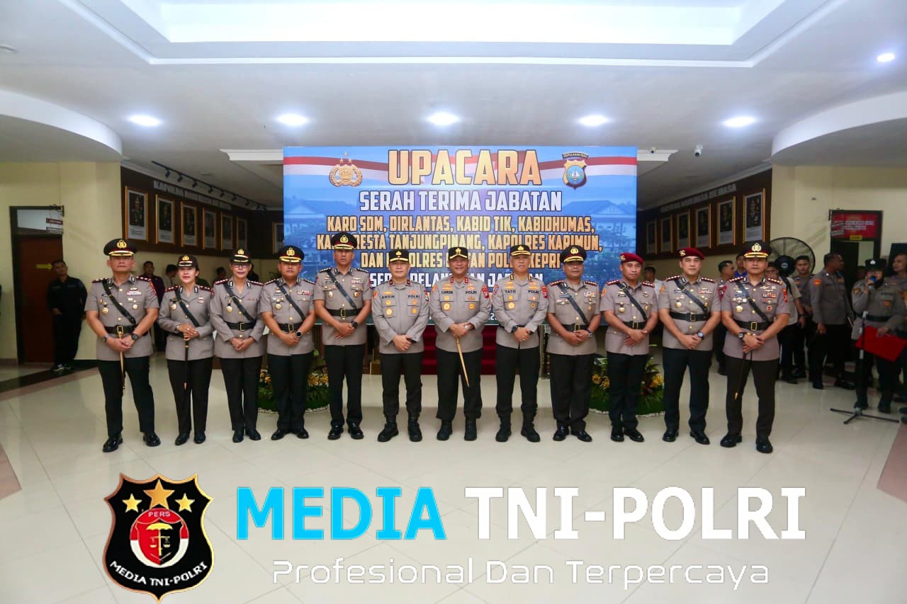 BATAM // MEDIATNI-POLRI.COM / Kapolda Kepulauan Riau Irjen. Pol. Asep Safrudin, S.I.K., M.H., memimpin upacara Serah Terima Jabatan (Sertijab) sejumlah pejabat utama di lingkungan Polda Kepri, meliputi Karo SDM, Dirlantas, Kabid TIK, Kabidhumas, Kapolresta Tanjungpinang, Kapolres Karimun, dan Kapolres Bintan.