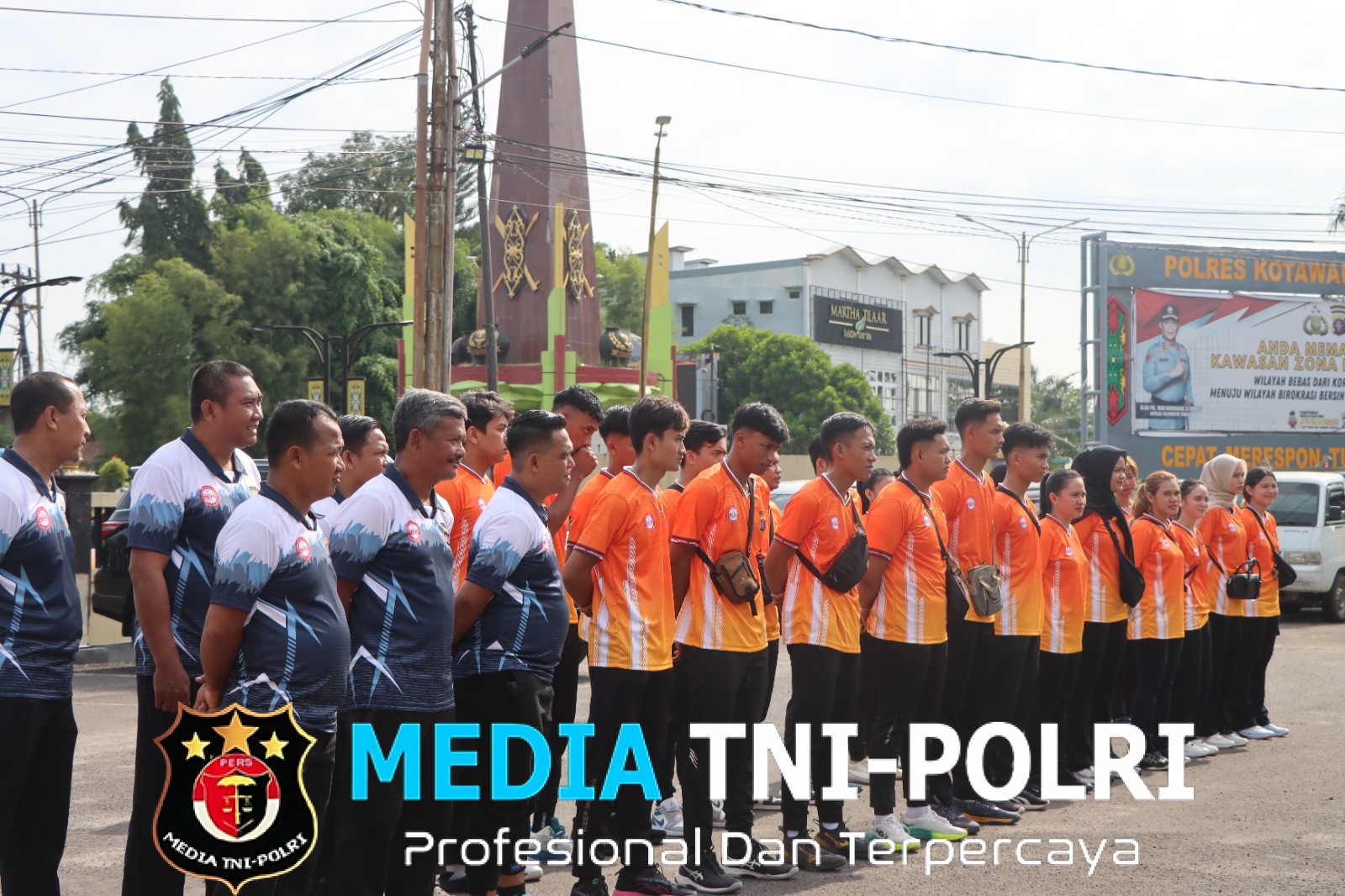 SAMPIT // MEDIATNI-POLRI.COM / Kapolres Kotawaringin Timur (Kotim) AKBP Resky Maulana Zulkarnain, S.H., S.I.K., M.H., memimpin pelepasan kontingen Bola Voli Kabupaten Kotim di halaman Mapolres Kotim,