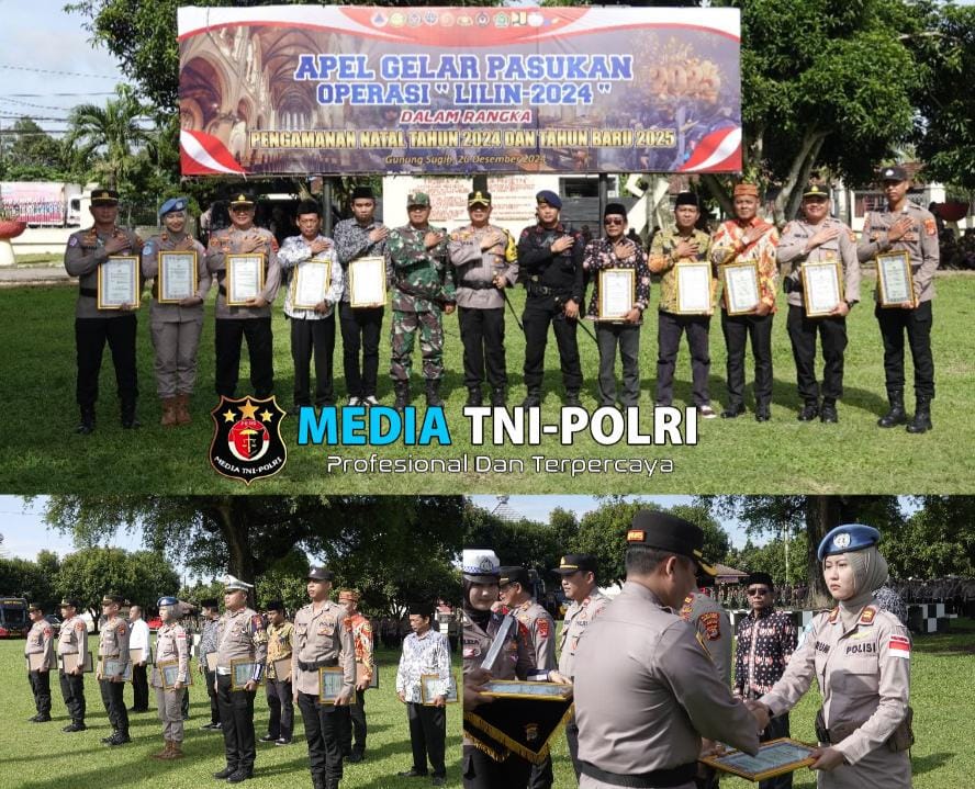 LAMPUNG TENGAH // MEDIATNI-POLRI.COM / Kapolres Lampung Tengah, Polda Lampung, AKBP Andik Purnomo Sigit, S.H., S.I.K., M.M memberikan penghargaan kepada personelnya dan sejumlah pihak yang telah menunjukkan prestasi, dedikasi, dan loyalitas luar biasa dalam mendukung pelaksanaan Pilkada serta tugas-tugas Kepolisian di wilayah Lampung Tengah.