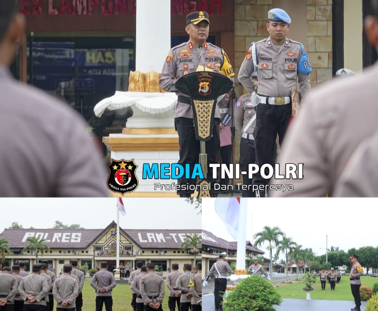 Upacara ini dipimpin langsung oleh Kapolres Lampung Tengah, Polda Lampung AKBP Andik Purnomo Sigit, S.H., S.I.K., M.M, dan diikuti para pejabat utama, Kapolsek jajaran, perwira, personel, serta ASN Polres Lampung Tengah.