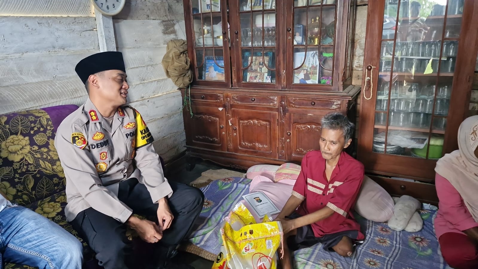 Dalam kunjungan tersebut, Kapolres memberikan bantuan sosial berupa dua karung beras seberat 10 kg dan uang santunan kepada Bapak Sukatno, yang sangat membutuhkan bantuan untuk pemulihan dan kebutuhan sehari-hari.
