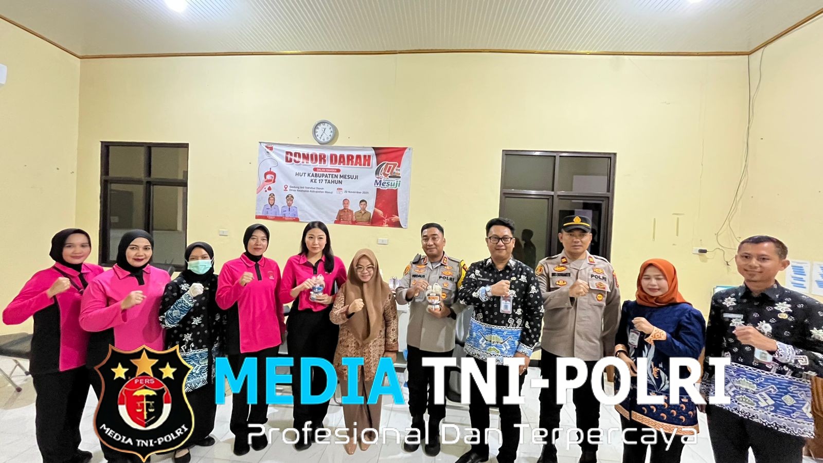 MESUJI // MEDIATNI-POLRI.COM / Kapolres Mesuji bersama Ketua Bhayangkari Cabang Mesuji, mendampingi Bupati Mesuji dalam acara sunat massal dan melaksanakan donor darah yang diselenggarakan di Rumah Sakit Umur Ragab Begawe Caram Brabasan. Kamis (20/11/2025)