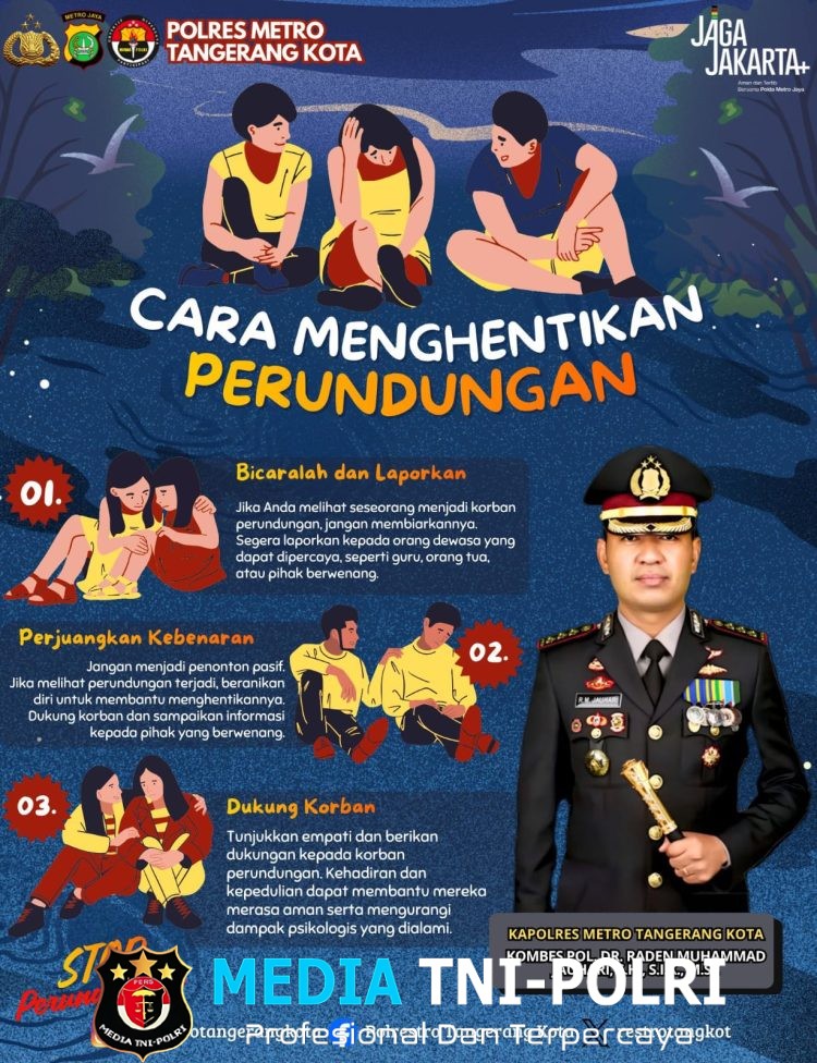 Polres Metro Tangerang Kota secara aktif mengampanyekan pesan “Stop Bullying” ke publik, terutama ke pelajar dan warga. Kapolres mengimbau seluruh elemen masyarakat untuk menolak segala bentuk perundungan, baik fisik, verbal, maupun digital.
