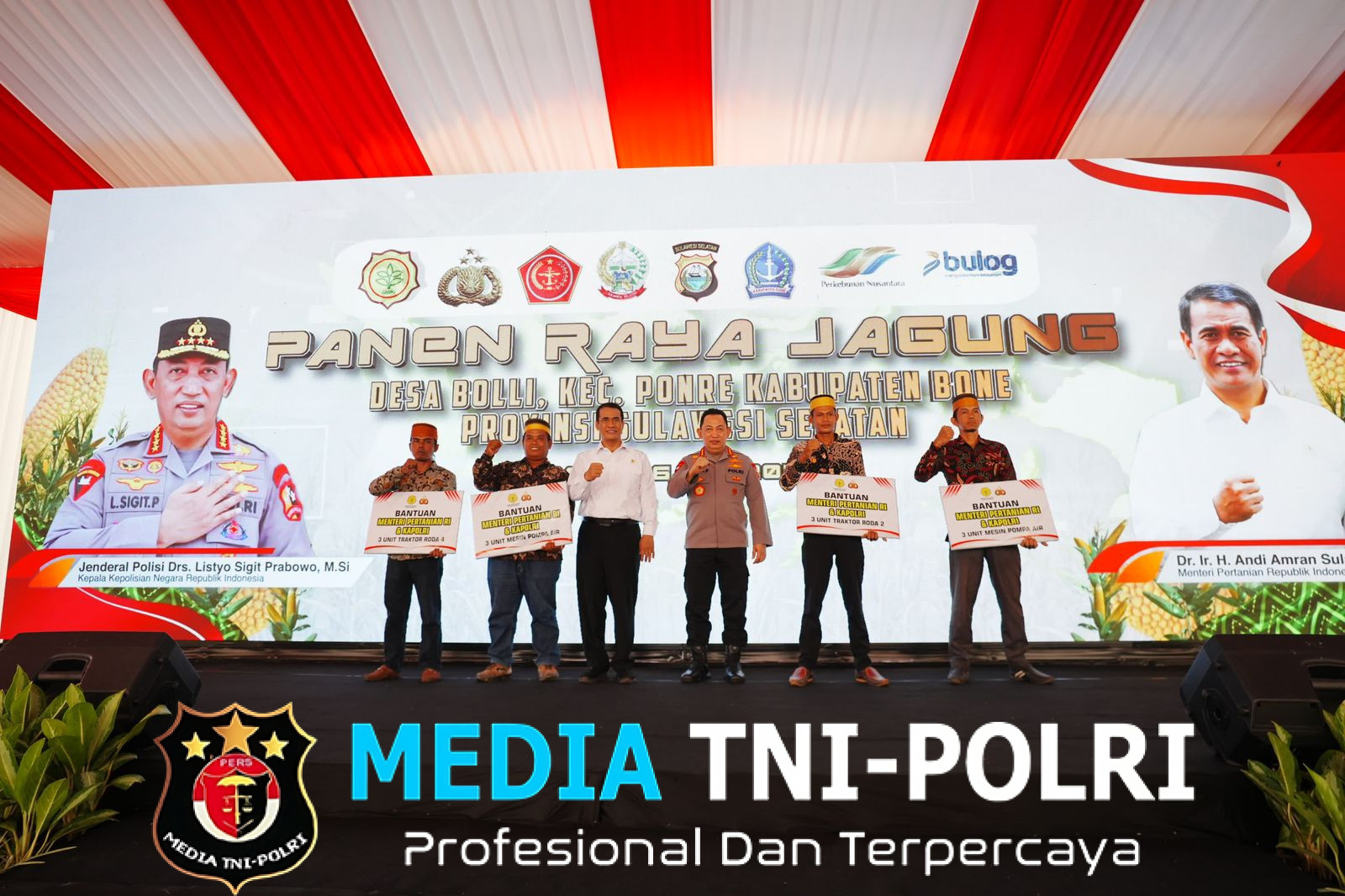 SULSEL // MEDIATNI-POLRI.COM / Kapolri Jenderal Listyo Sigit Prabowo dan Mentan Amran Sulaiman melaksanakan panen raya jagung di Desa Bolli, Bone, Sulawesi Selatan (Sulse), Jumat (16/5/2025).