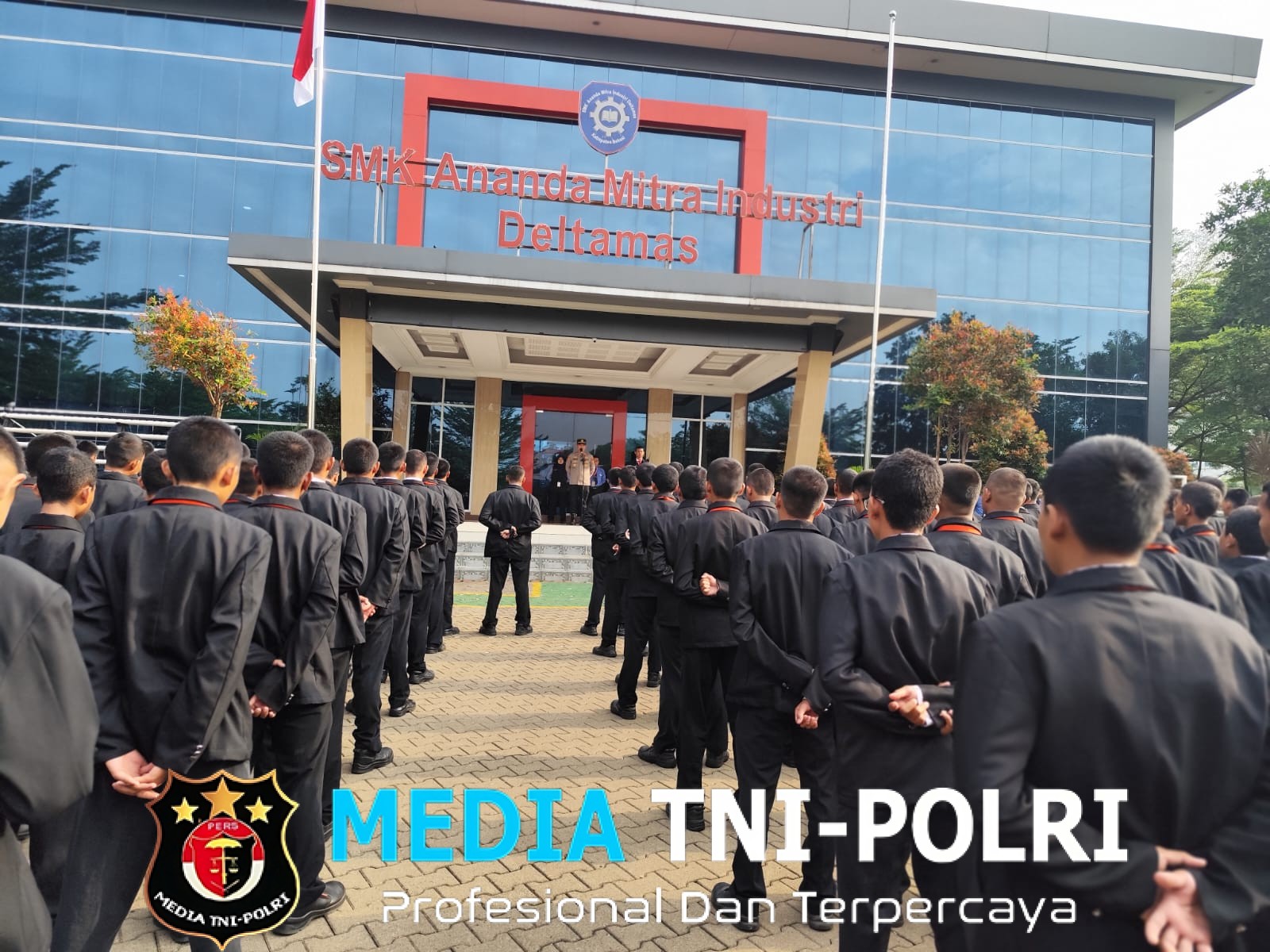 Bhabinkamtibmas Desa Hegarmukti BRIPKA Eka Agung, jajaran guru, serta seluruh siswa-siswi SMK Ananda Mitra Industri Deltamas.