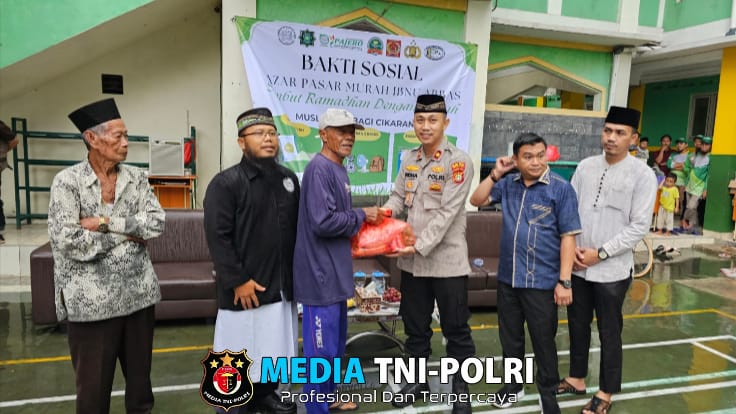 CIKARANG SELATAN // MEDIATNI-POLRI.COM / Kapolsek Cikarang Selatan, Kompol Ridha Poetera Aditya, SH., S.I.K., M.Si, menghadiri acara bakti sosial berupa bazar murah yang diselenggarakan oleh Yayasan Ash Shirot Al Muttaqin di Komplek Sekolah Ibnu Abbas, Kp. Nambo RT012/06, Desa Sukasejati, Kecamatan Cikarang Selatan, Kabupaten Bekasi.