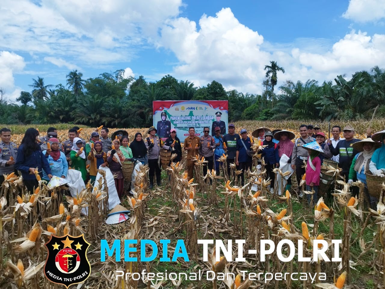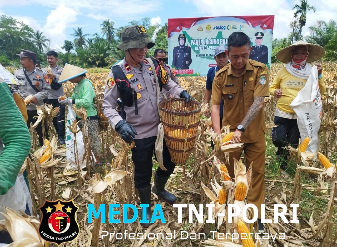 LANDAK // MEDIATNI-POLRI.COM / Polres Landak Polsek Mempawah Hulu Polda Kalbar melaksanakan panen perdana jagung di lahan Demplot Polsek Mempawah Hulu di Dusun Muara Desa Tunang, selasa 14/10/2025.