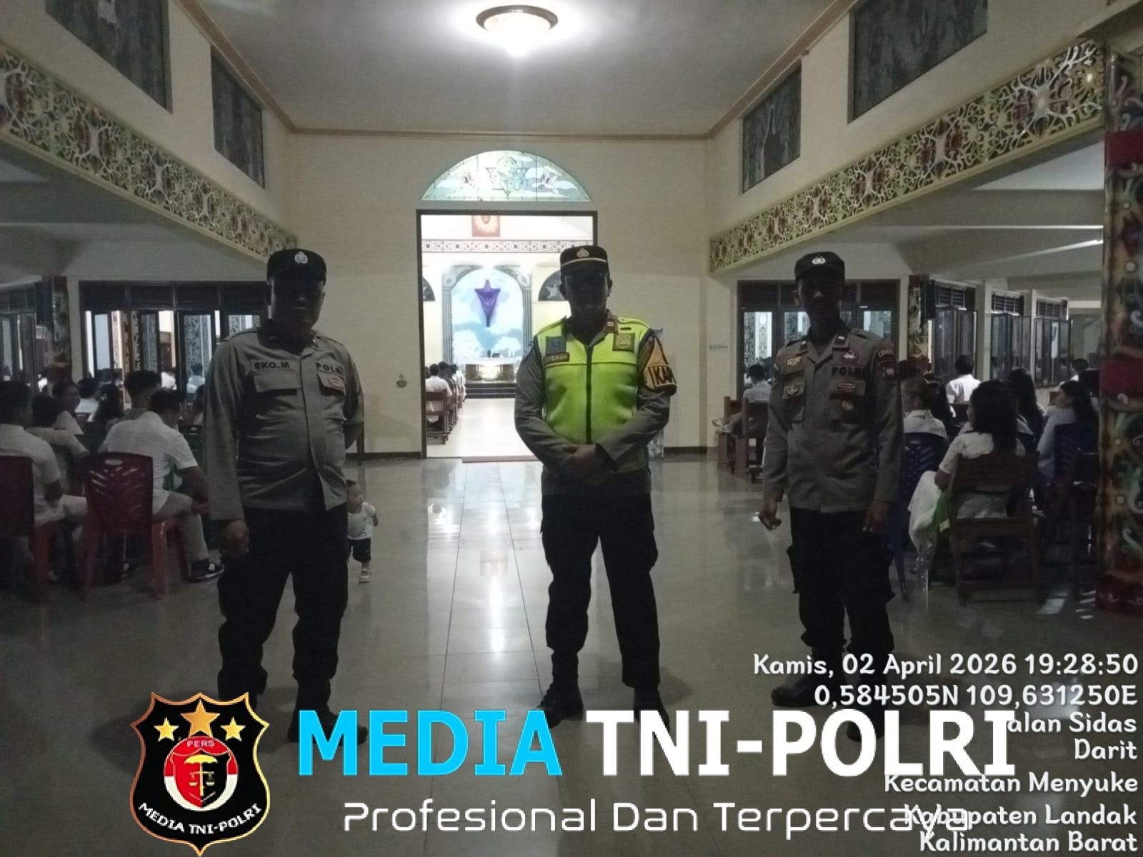 LANDAK // MEDIATNI-POLRI.COM / Kegiatan pengamanan Ibadah Misa Kamis Putih pada hari Kamis tanggal 02 April 2026 sekitar pukul 19.00 wib di Gereja Katolik Santo Agustinus dan Santo Metias Darit di Desa Darit Kecamatan Menyuke Kabupaten Landak.