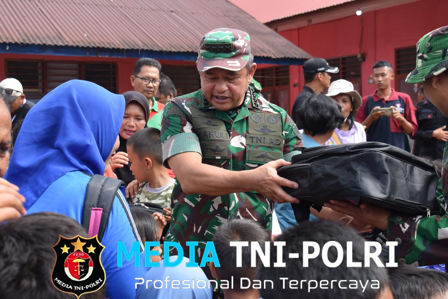 Di sekolah, Kasad menyerahkan bantuan pendidikan berupa satu unit mesin sumur bor dan perlengkapan sekolah.