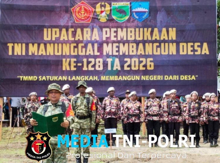 MANOKWARI // MEDIATNI-POLRI.COM / Semangat gotong royong menggema di Kampung Tanah Rubuh, Distrik Manokwari Utara, saat Kasdam XVIII/Kasuari Brigjen TNI Dian Hardiana, S.I.P., bersama pejabat utama Kodam XVIII/Kasuari menghadiri pembukaan TMMD ke-128, Rabu (22/04/2026).