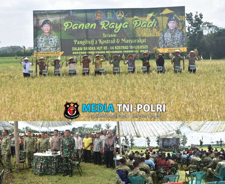 MALANG // MEDIATNI-POLRI.COM / Dalam rangka memperingati HUT ke-64 Komando Strategis Angkatan Darat (Kostrad), Divisi 2/Kostrad menggelar kegiatan Panen Raya yang berlangsung di Lapangan Desa Ternyang, Kecamatan Sumberpucung, Kabupaten Malang.
