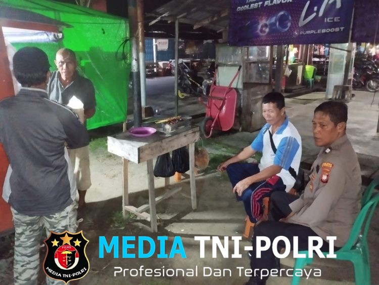 Dengan pendekatan humanis, petugas menyampaikan himbauan kamtibmas sambil duduk santai bersama masyarakat di warung kopi dan lapak kuliner pinggir jalan.