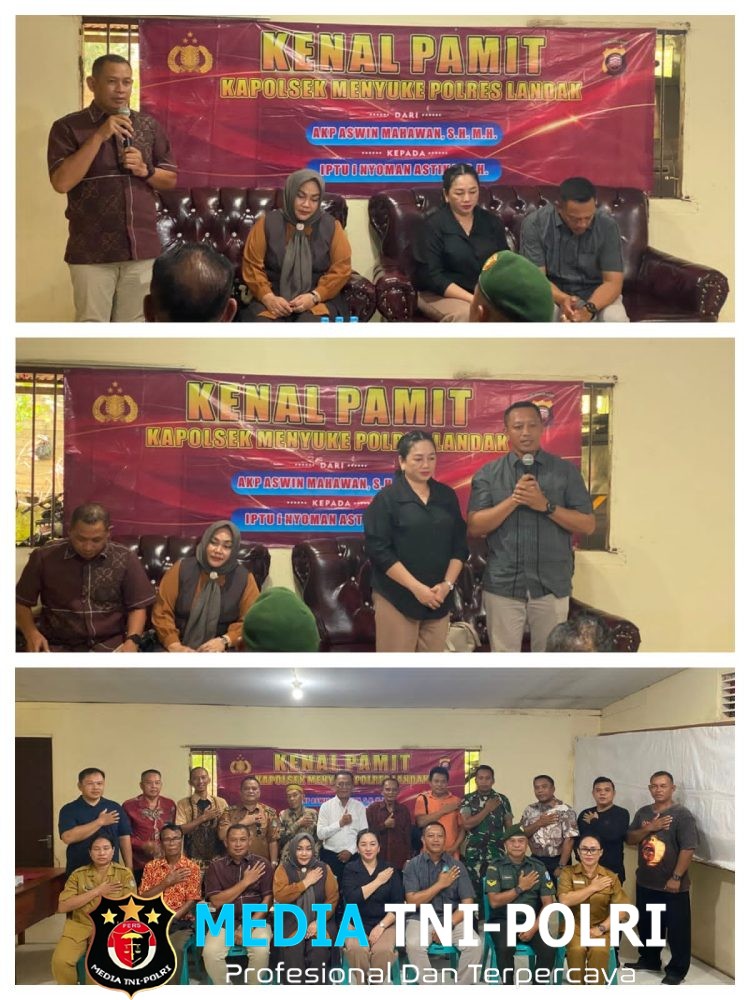 LANDAK // MEDIATNI-POLRI COM / Polsek Menyuke Polres Landak menggelar acara pisah sambut untuk pejabat Kapolsek yang lama dengan pejabat Kapolsek yang baru, di Dusun Pemantas Desa Darit Kecamatan Menyuke Kabupaten Landak,
