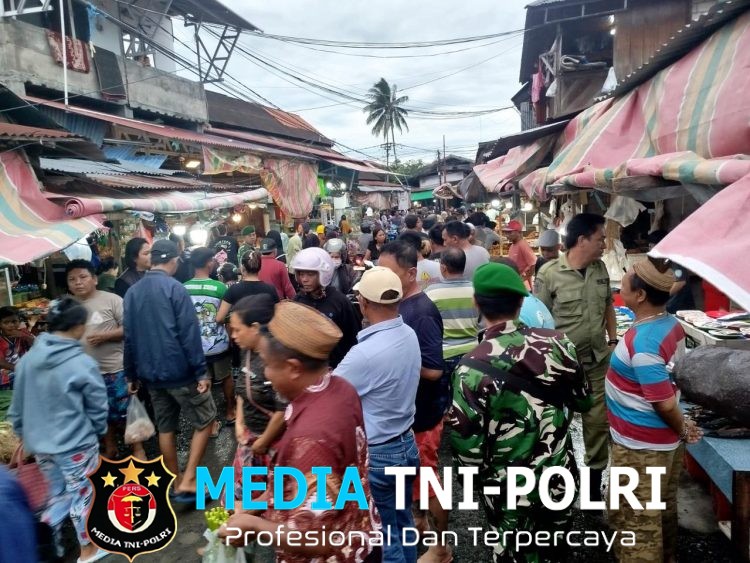 Babinsa Kelurahan Girian Weru Satu Pelda Agus Ali bersama Anggota Koramil 1310-01/Bitung, Babhinkamtibmas Aipda Rizki Asyad, Anggota Polres Bitung, Satpol PP Kota Bitung serta perangkat Perumda Pasar Kota Bitung.