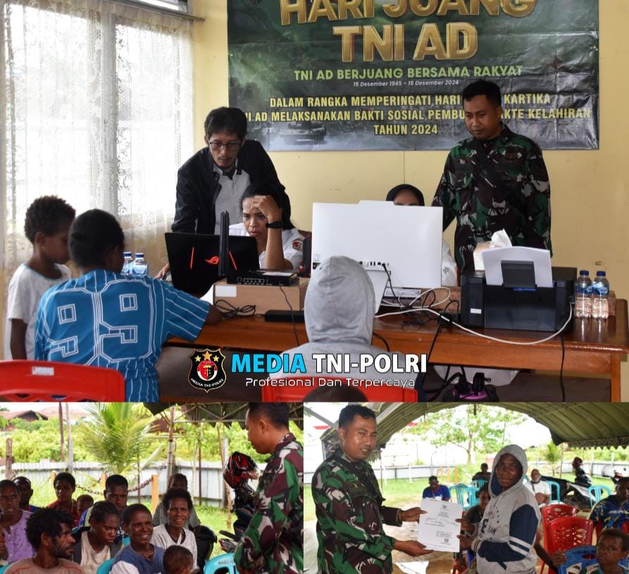 MERAUKE // MEDIATNI-POLRI.COM / Kodim 1707/Merauke bekerja sama dengan Dinas Kependudukan dan Catatan Sipil (Disdukcapil) Kab. Merauke menyelenggarakan kegiatan bakti sosial layanan pembuatan Akta Kelahiran yang dilaksanakan pada hari Rabu 11 Desember 2024 bertempat di Aula Kantor Kelurahan Karang Indah Kabupaten Merauke – Provinsi Papua Selatan.