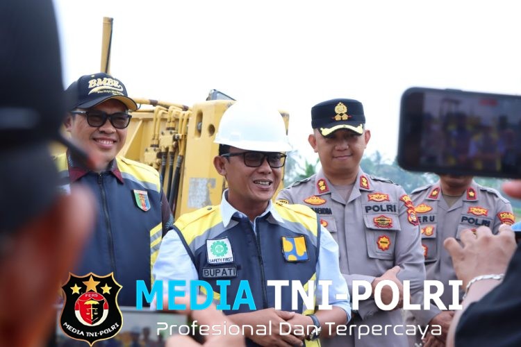 LAMPUNG TENGAH // MEDIATNI-POLRI.COM / Kapolres Lampung Tengah, AKBP Alsyahendra, S.I.K., M.H., bersama Bupati, Ardito Wijaya dan perwakilan Kodim 0411/KM, melakukan peninjauan langsung terhadap perbaikan ruas Jalan Gunung Sugih – Kota Gajah, Rabu (28/8/2025).