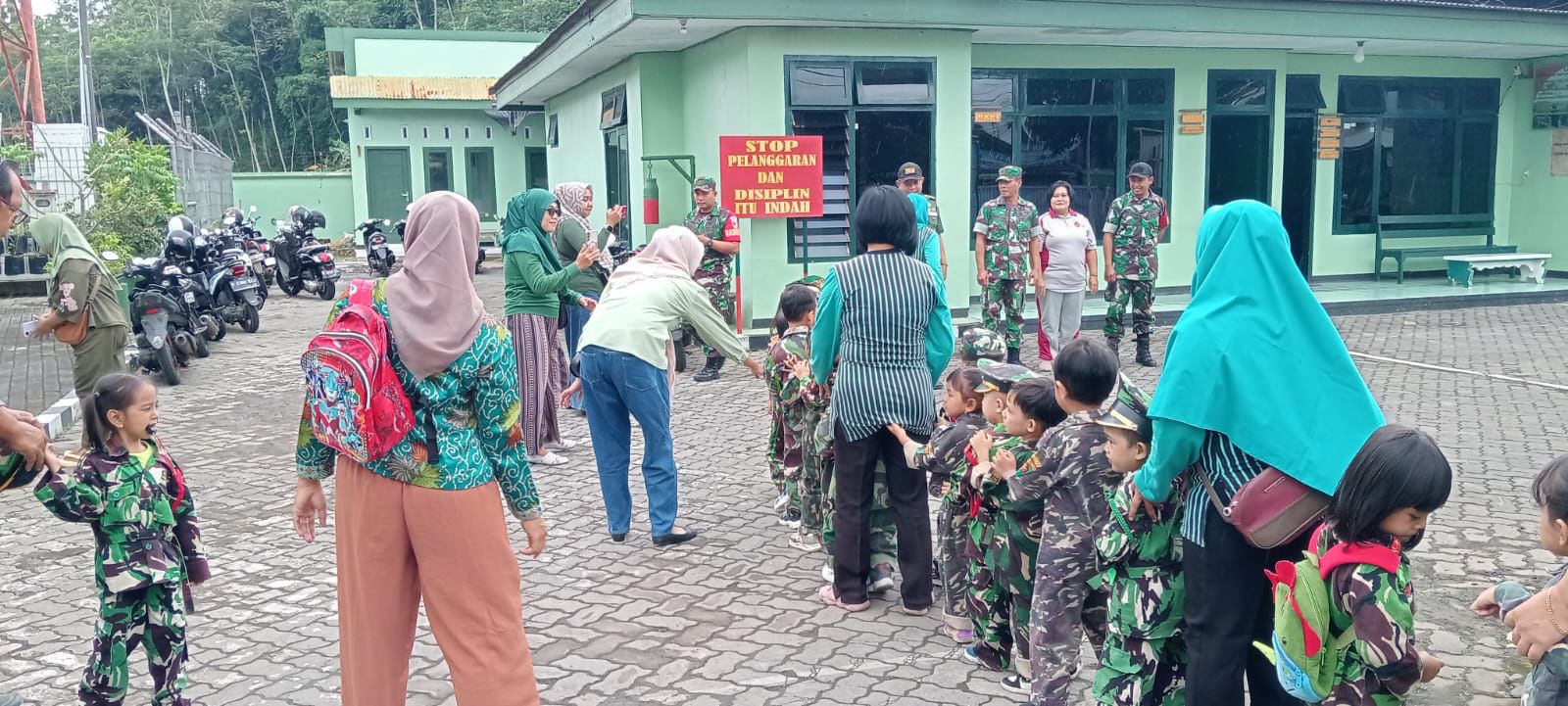 MALANG // MEDIATNI-POLRI.COM / Dalam rangka mendukung perkembangan pendidikan anak usia dini, Batuud Koramil 0818/14 Turen, Pelda Eko, bersama anggota Koramil, melaksanakan kegiatan pendampingan kunjungan ke lembaga pendidikan anak usia dini, KB Cemara di Makoramil 14/Turen, Kecamatan Turen, Kabupaten Malang, pada Jumat, 14 Februari 2025.
