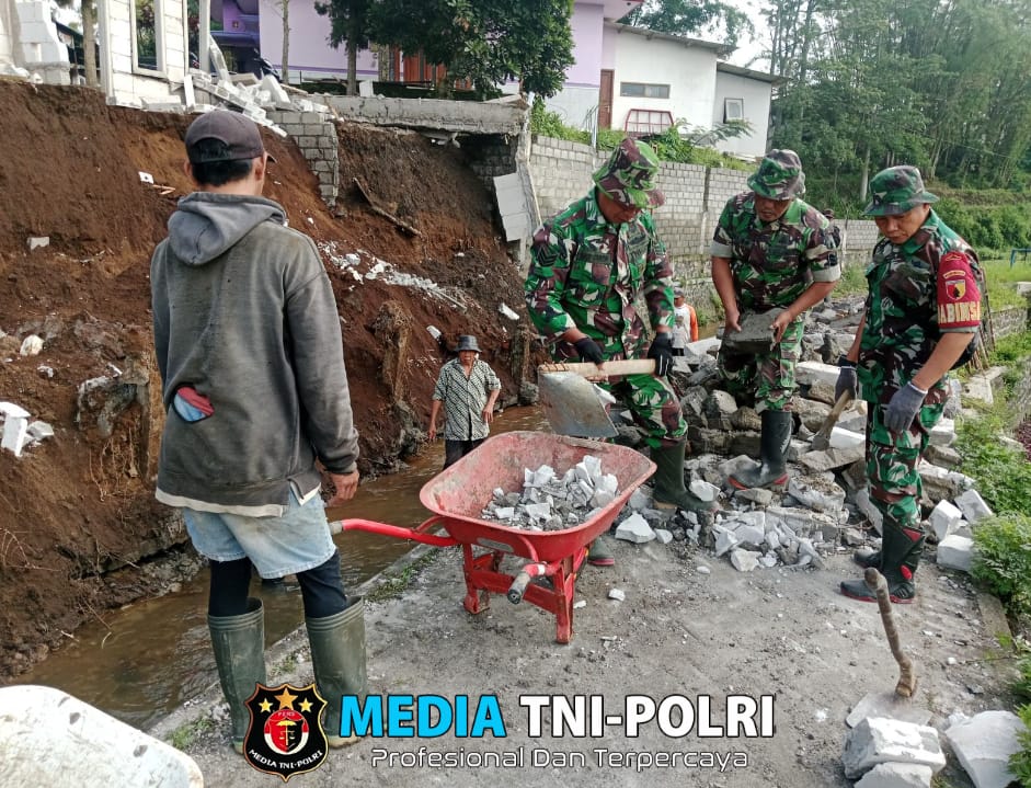 MALANG // MEDIATNI-POLRI.COM / Dalam rangka membantu masyarakat yang terkena musibah, Batituud Koramil 0818/33 Bumiaji Pelda Khadir bersama anggota Koramil dan warga Desa Giripurno melaksanakan kegiatan Karya Bhakti sebagai respon cepat terhadap longsornya bangunan rumah milik Bapak Iksan Desa Giripurno Kecamatan Bumiaji Kota Batu. Kamis (19/12/2024)