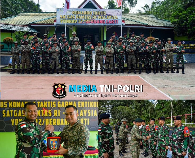 SANGGAU // MEDIATNI-POLRI.COM / Dalam menyambut bulan suci Ramadhan, Satgas Pamtas RI-Malaysia Yonkav 12/BC menerima kunjungan CO 13-RAMD Letnan Kolonel Syahrulniza bin Hj Jami di Makotis Entikong, Desa Entikong, Kecamatan Entikong, Kabupaten Sanggau,Kalbar-Kamis (27/02/2025)