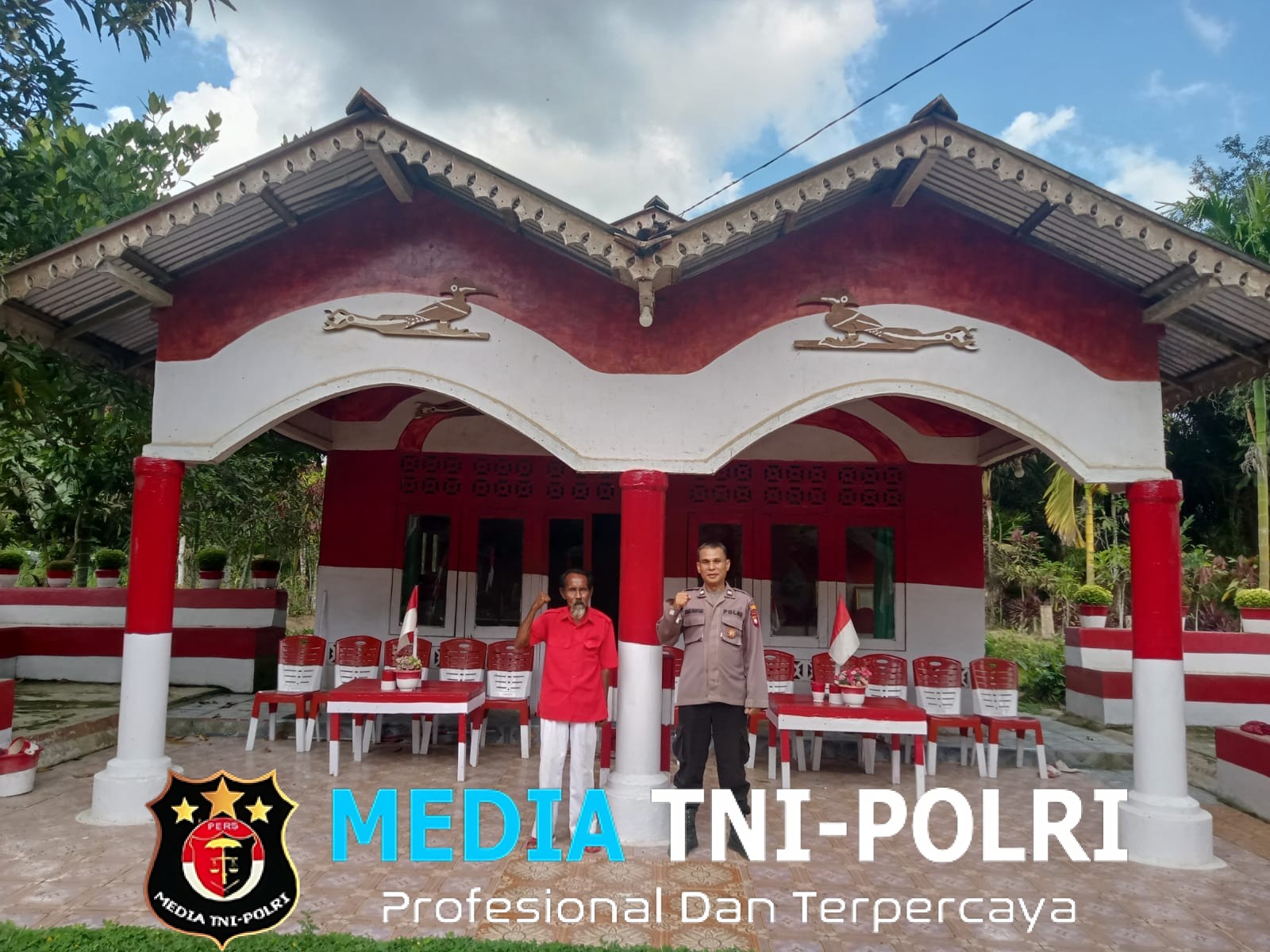 Kanit Binmas Polsek Sengah Temila Aiptu Parluhutan melaksanakan kegiatan sambang ke rumah warga yang unik dan penuh semangat nasionalisme,