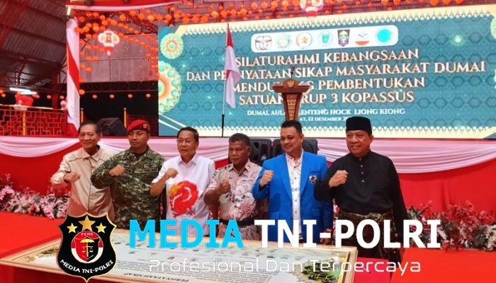 DUMAI // MEDIATNI-POLRI.COM / Sebuah acara Silaturahmi Kebangsaan yang bertujuan untuk menyampaikan pernyataan sikap dukungan masyarakat Kota Dumai terhadap pembentukan dan penempatan Satuan Grup 3 Kopassus TNI AD berlangsung dengan lancar. Acara ini diselenggarakan di Aula Kelenteng, Jalan Kelakap Tujuh, (13/12/2025).