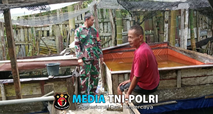 NABIRE // MEDIATNI-POLRI.COM / Melalui komunikasi sosial,(Komsos), Personil Babinsa Koramil 01/Nabire Kodim 1705/Nabire Sertu Junaidi mengunjungi peternak ikan Lele di Kampung Wanggar Distrik Wanggar, Kabupaten Nabire, Jumat, (14/04/2025)