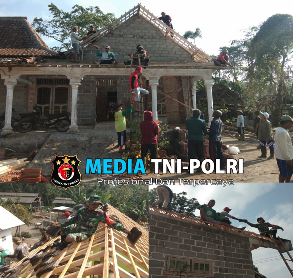 BLITAR // MEDITNI-POLRI.COM / Terciptanya sinergitas TNI bersama rakyat, Babinsa Ds. Kebondurem Koramil 0808/07 Ponggok Kodim 0808/Blitar Sertu Tri Rosadi membantu warga bergotong royong, merehap bangunan rumah Ibu Sulastri RT. 01 RW. 03 Desa Kebonduren Kecamatan Ponggok Kabupaten Blitar, Sabtu (26/10/2024).