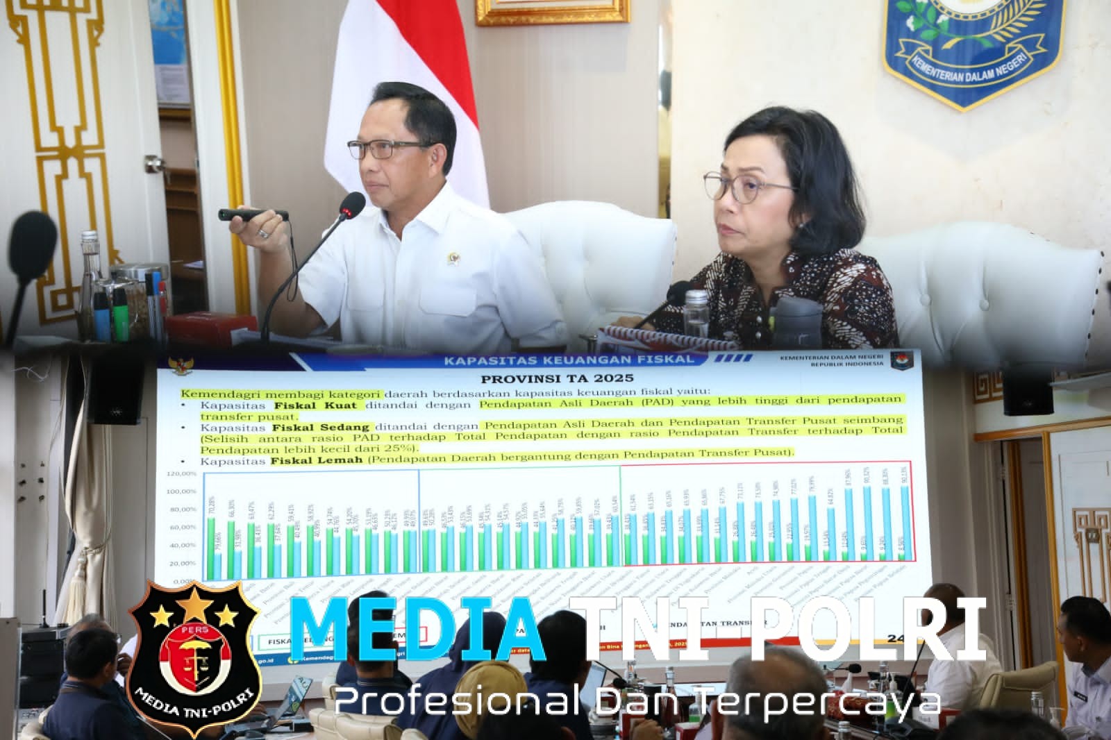 JAKARTA // MEDIATNI-POLRI.COM / Menteri Dalam Negeri (Mendagri) Muhammad Tito Karnavian menerima kunjungan Menteri Keuangan (Menkeu) Sri Mulyani Indrawati di Kantor Kementerian Dalam Negeri (Kemendagri), Jakarta, Rabu (30/7/2025).