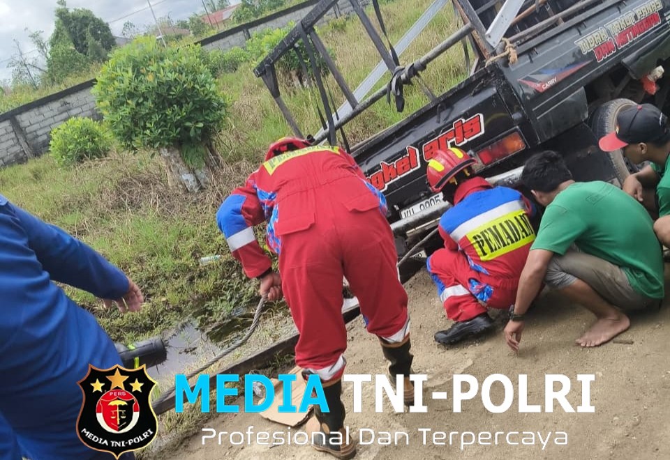Setibanya di lokasi kejadian, petugas menemui sebuah mobil carry pikap terperosok ke dalam parit.