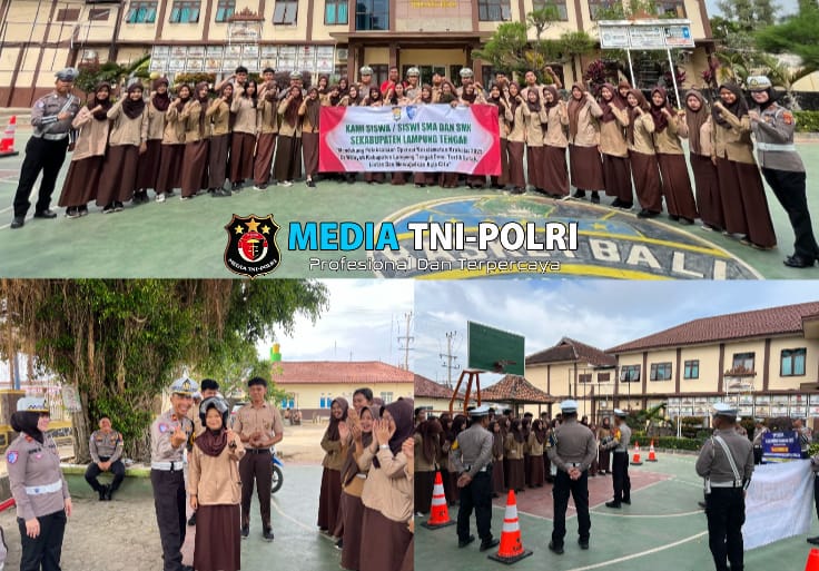 LAMPUNG TENGAH // MEDIATNI-POLRI.COM / Satlantas Polres Lampung Tengah, Polda Lampung terus mengkampanyekan safety riding atau keamanan dan keselamatan saat berkendara ke sekolah-sekolah, Jumat (14/2/2025) pagi.