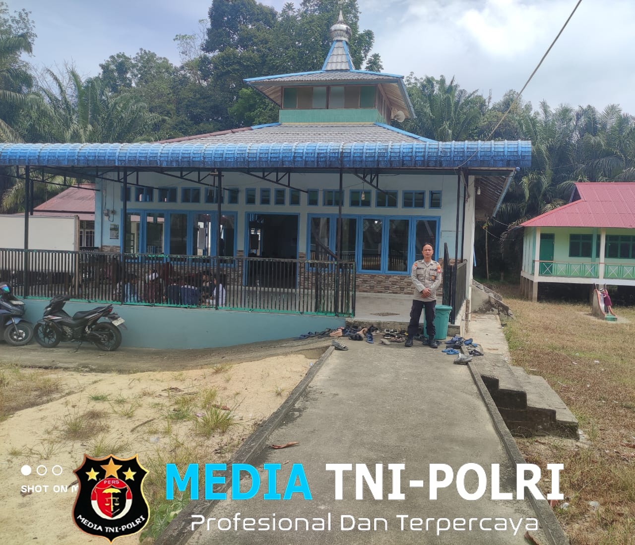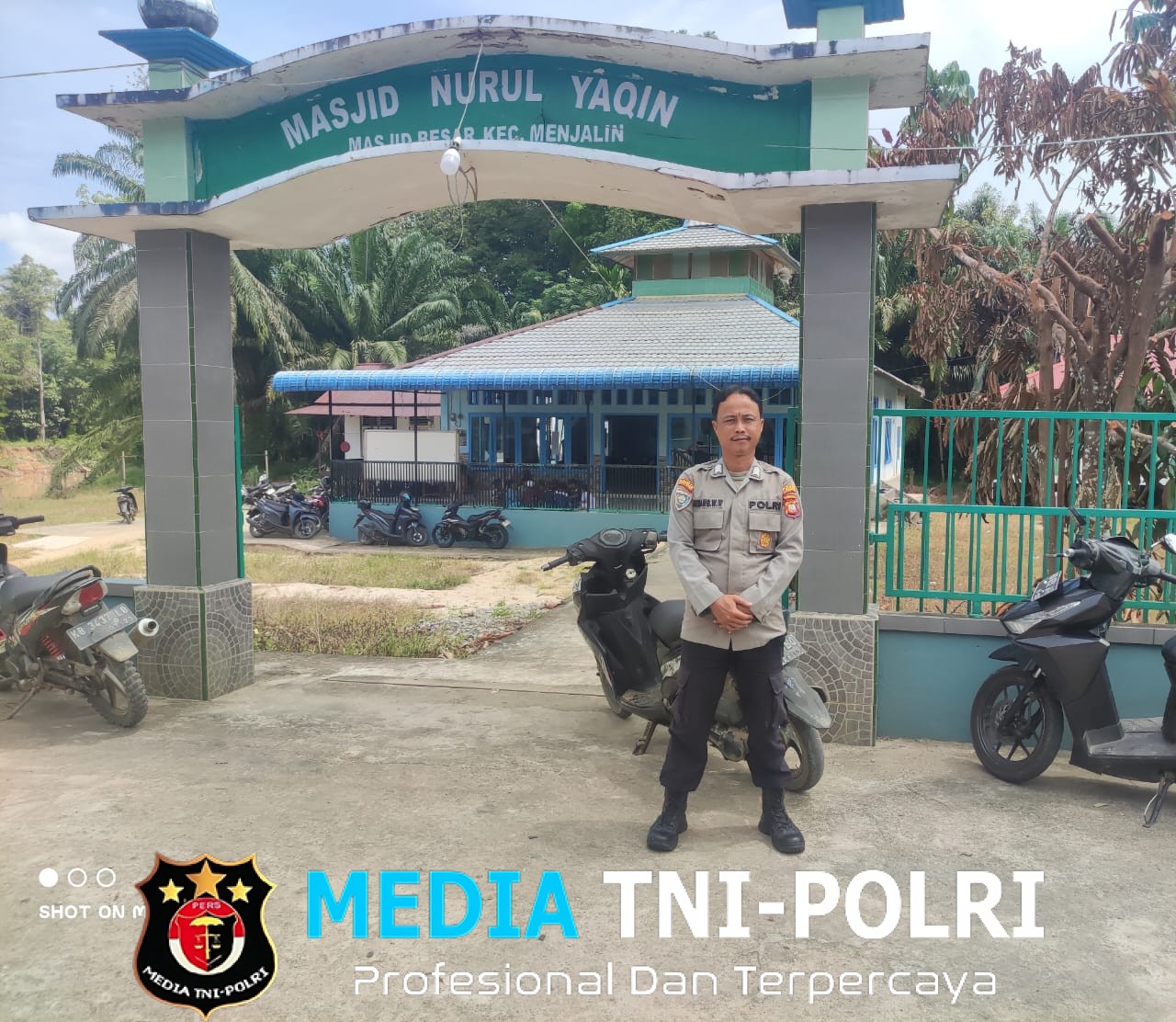 LANDAK // MEDIATNI-POLRI.COM / Bhabinkamtibmas Polsek Menjalin Polres Landak Polda Kalbar Bripka Gesang Wahyu melaksanakan kegiatan pengamanan sholat Jumat di Masjid Nurul Yaqin Menjalin Desa Menjalin Kecamatan Menjalin Kabupaten Landak, Jumat (26/9/2025).