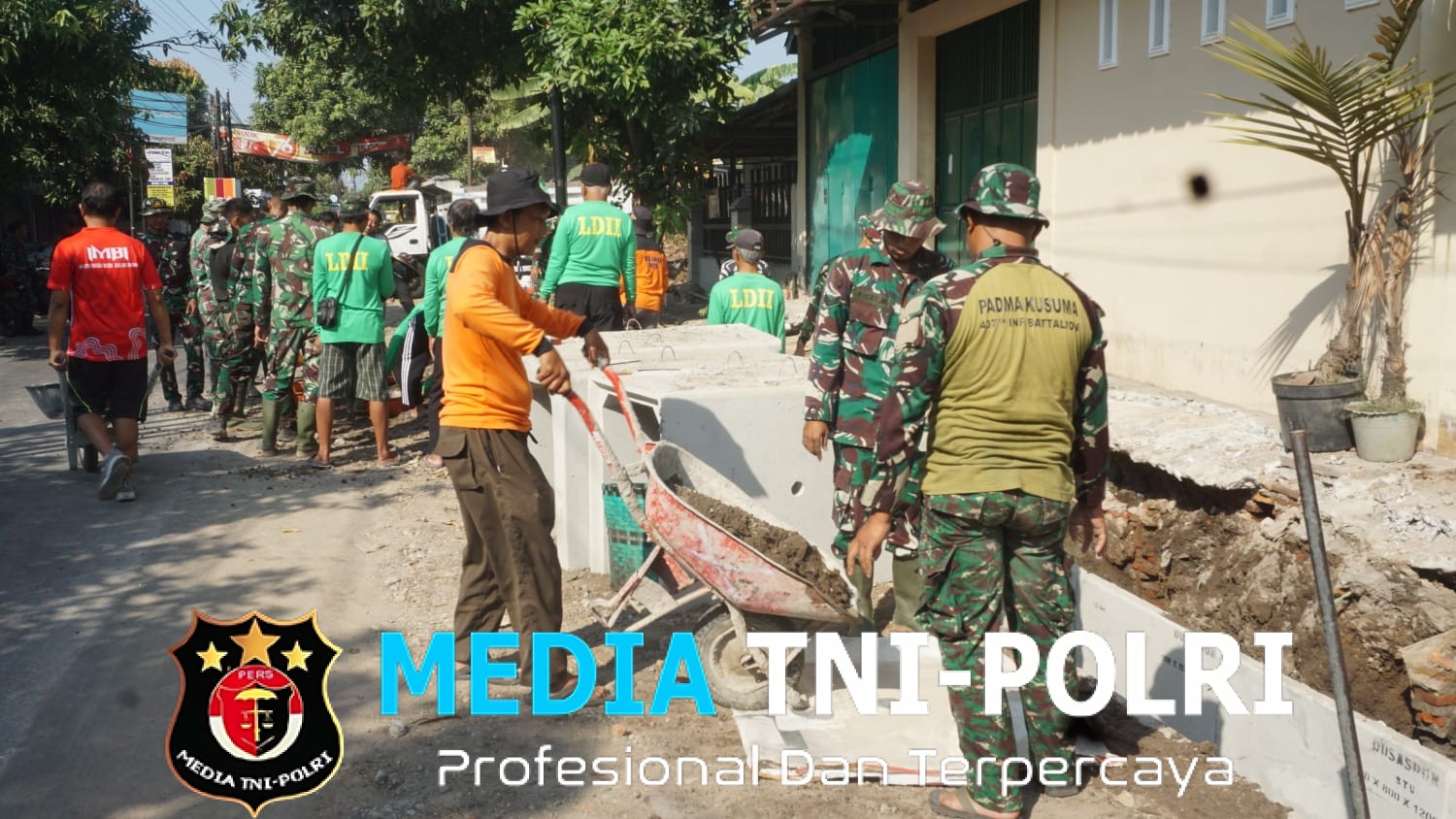 Semangat gotong royong, saling bahu-membahu terus menghiasi suasana bekerja di setiap sasaran dalam Program TMMD Ke -125 Kodim 0735/Surakarta.