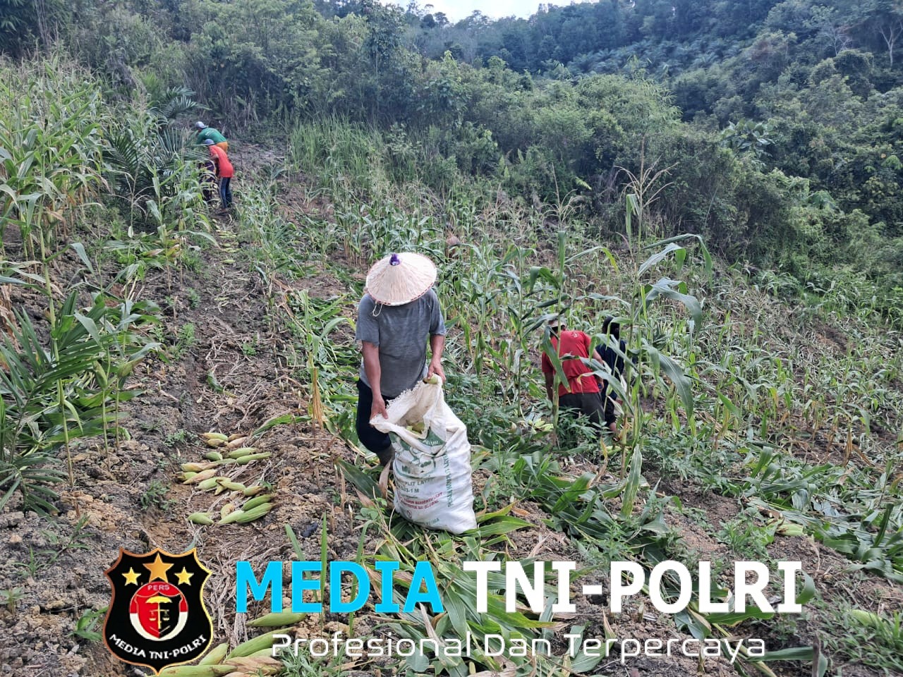 LANDAK // MEDIATNI-POLRI COM / Polsek Ngabang – Polres Landak – Polda Kalbar, Kelompok Tani (Poktan) Pengiri Hati melaksanakan kegiatan panen jagung manis di lahan demplot yang berlokasi di Dusun Munggu Lumut, Desa Kayuara, Kecamatan Jelimpo, Kabupaten Landak, Selasa (21/4/2026). Sore