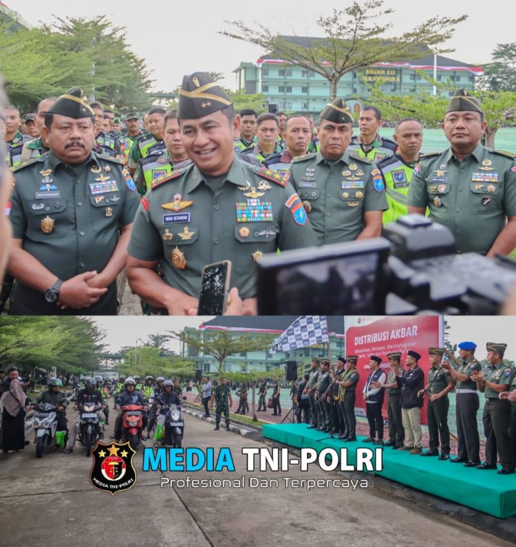 KUBU RAYA // mediatni-polri.com / Pangdam XII/Tanjungpura Mayjen TNI Iwan Setiawan, S.E., M.M., melepas distribusi akbar atau penyaluran bantuan beras dari Masjid Kapal Munzalan Indonesia untuk pondok pesantren dan anak yatim di wilayah Pontianak dan Kubu Raya. Acara pelepasan berlangsung di Makodam XII/Tpr, Jum’at (16 – 08 – 2024)