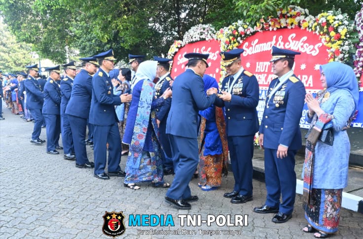 JAKARTA // MEDIATNI-POLRI.COM / Pangkoops Udara I Marsda TNI Mohammad Nurdin menghadiri upacara peringatan ke-79 Hari TNI Angkatan Udara tahun 2025 beserta Halal Bihalal Hari Raya Idul Fitri 1446 H/2025 M yang dilaksanakan di Mabesau, Cilangkap, Jakarta Timur. (Rabu,9-4-2025).